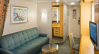 ツインベッド 2 台 (クイーンサイズベッドに変換可能)、シッティングエリア (ソファーベッド付きの客室もあります)、専用バスルーム、専用バルコニー、バルコニー: 89 平方フィート。