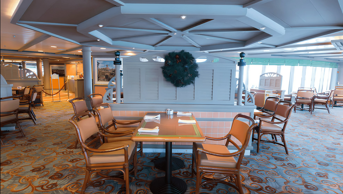 内側客室は約 160 ~ 182 平方フィートで、高級アメニティがふんだんに備わっています。一部の客室には、3 人目、4 人目の乗客を収容できるプルマン ベッドも備わっています。内側客室には、以下の設備と高級アメニティが標準装備されています。クイーン サイズ ベッドに変換できるツイン ベッド。シャワー付きの専用バスルーム。シャンプー、コンディショナー、ボディー ローション。100% エジプト綿のリネン。衛星テレビ、冷蔵庫、ヘアドライヤー、金庫、クローゼット、電話、デスク。米国プラグ付き 110V AC 電源コンセント。毎日のハウスキーピング サービス。毎晩のターンダウン サービス。