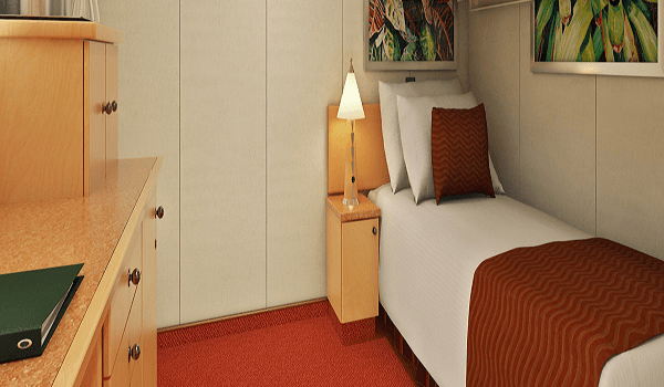 ツインベッドと上段プルマンベッド 1 台。デスクと椅子。シャワー付きのフルバスルーム。クローゼット 3 室。専属のルーム スチュワード。柔らかくて心地よいリネン (カーニバル コンフォート コレクション)。貴重品用の室内金庫。十分なクローゼットと引き出しスペース。テレビ。客室の空調。バスローブはリクエストに応じてご利用いただけます。