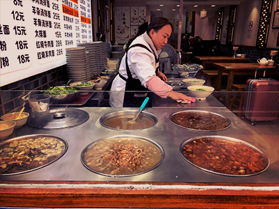 目の前でビヨンビヨン麺を伸ばしてくれるパフォーマンスメニュー『捞派捞面』は必見です。