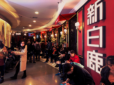 上海の人気店はどこも混み合いますが、お目当のレストラン新白鹿餐厅も例外ではありません。